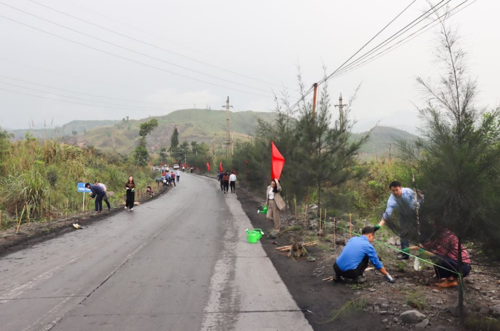 Cán bộ, công nhân Công ty than Hạ Long trồng cây phi lao dọc tuyến đường khu Khe Chàm, hưởng ứng Tết trồng cây Xuân Bính Ngọ 2026 (Ảnh: Công đoàn Than – Khoáng sản Việt Nam)