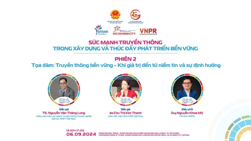 Ngày 6 tháng 9 năm 2024, Mạng lưới Quan hệ Công chúng Việt Nam (VNPR) sẽ tổ chức hội thảo chuyên đề “Sức mạnh truyền thông trong xây dựng và thúc đẩy phát triển bền vững” trong khuôn khổ Hội chợ Du lịch Quốc tế Thành phố Hồ Chí Minh lần thứ mười tám. Sự kiện do Cục Du lịch Quốc gia Việt Nam phối hợp với Sở Du lịch Thành phố Hồ Chí Minh đồng tổ chức.