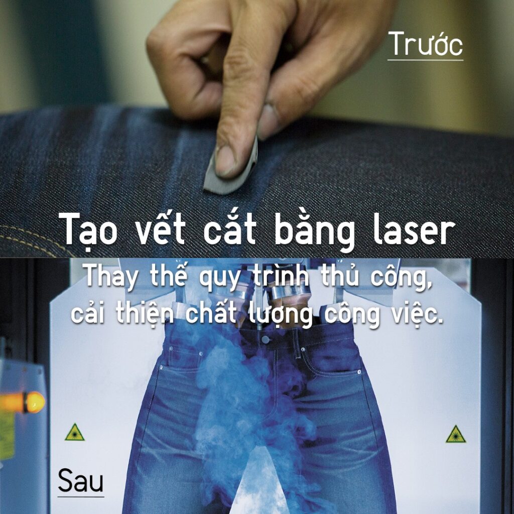 Nhờ ứng dụng ozone và laser, lượng nước và hóa chất sử dụng đã giảm đáng kể. Công nghệ laser còn cho phép khắc trực tiếp hoa văn, tạo hiệu ứng wash tinh xảo trên bề mặt vải denim, vừa tiết kiệm năng lượng vừa tạo ra những sản phẩm độc đáo. Đây là bước tiến quan trọng, giúp thương hiệu giữ vững sức cạnh tranh mà vẫn đảm bảo trách nhiệm môi trường.