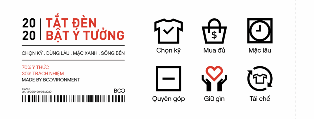 Chiến dịch thường niên Tắt đèn bật ý tưởng năm 2019 mang thông điệp “Việc nhỏ mỗi ngày – Đổi thay Trái đất”. BOO cùng khách hàng và cộng đồng trẻ lan tỏa phong trào tắt đèn, đồng thời khuyến khích những hành động xanh trong đời sống thường nhật. Đây là minh chứng rõ ràng cho cách một thương hiệu dẫn dắt bền vững có thể kết nối cộng đồng bằng cả thời trang lẫn lối sống.